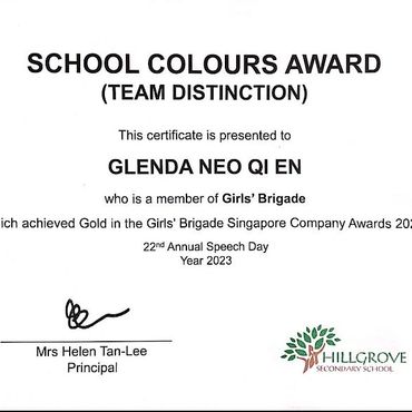 Represented the 62nd Girls' Brigade and Hillgrove Secondary School in the National Girls' Brigade Drill Competition.